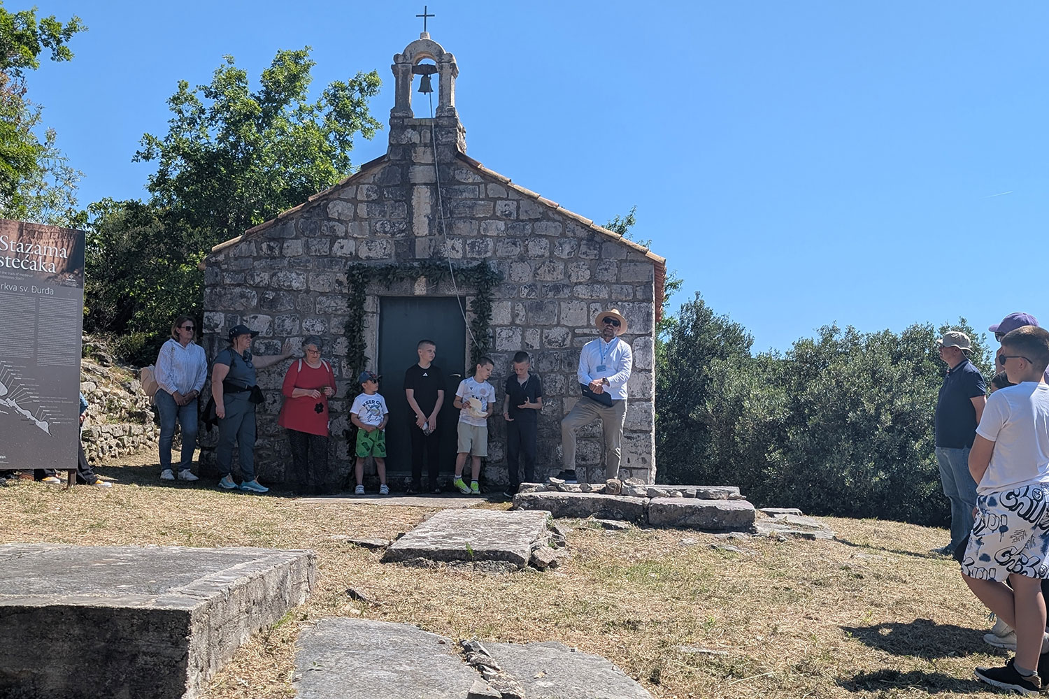 U ugodnoj atmosferi sudionici su kroz niz ključnih lokacija slušali zanimljive priče o razvoju poput Postranja, njihegovoj arhiheologiji i načinu života koji je oblikovao današnje vrijednosti zajednice. Program je započeo obilaskom crkve sv. Đurđa na ulazu u Buiće, gdje je otkriven jedan od najvažnijih arheoloških nalaza ovog kraja, ali I hrvatske povijesti; župski glagoljski natpis. Već na samom početku bilo je jasno da će ovo biti itekako zanimljiv ‘đir’.