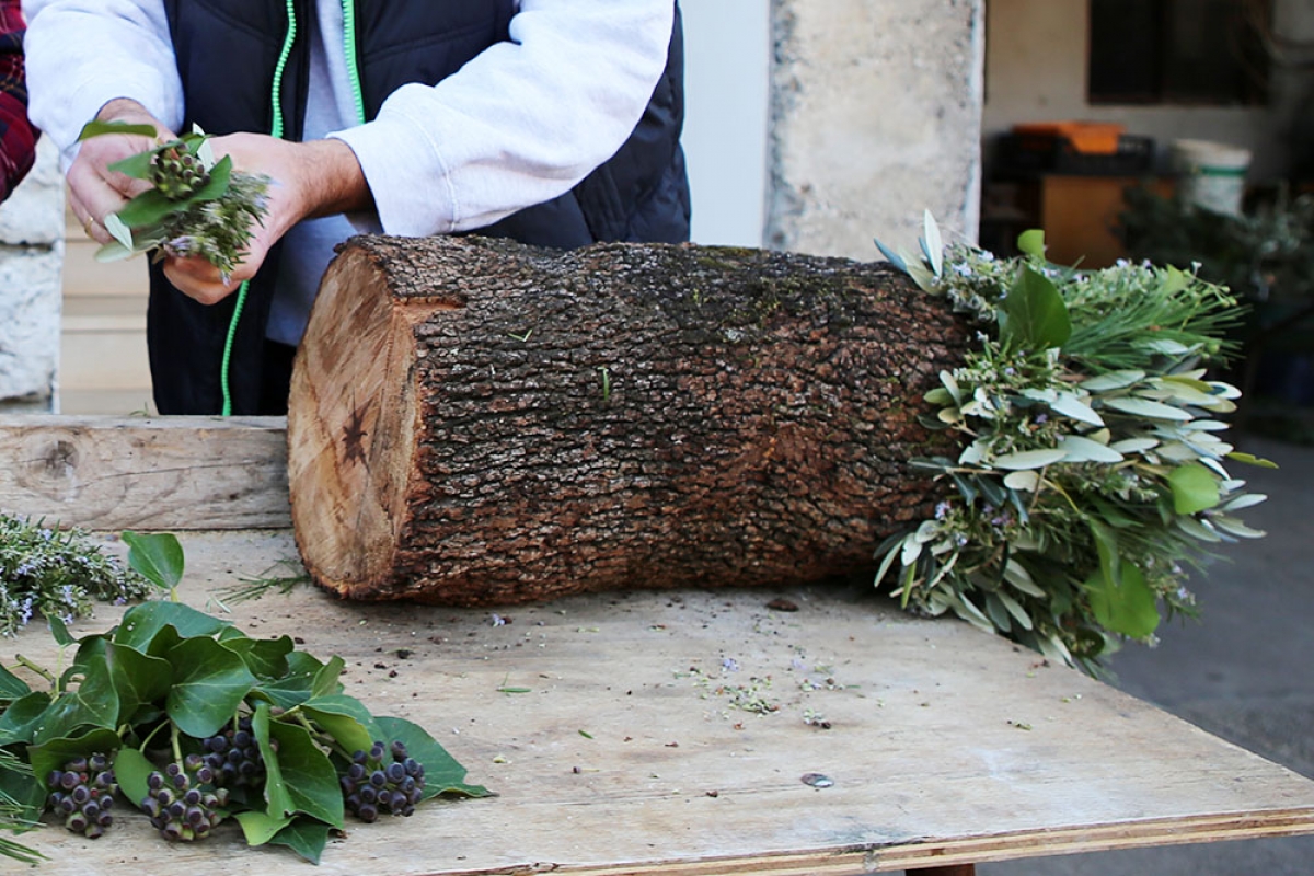 Popodne je domaćin kitio kuću kiticom od rusmarina, masline i lovorike. Usjeko bi i badnjak pa i njega na isti način okitio. Badnjak je grana od duba ravna i duga oko metar, a široka u promjeru oko deset cm. Prilikom unošenja badnjaka u komin postupilo se ovako: muški član obitelji, domaćinov brat ili najstariji sin, dolazio je s okićenim drvom a na pragu od kuhinje čekao je domaćin. Tu su prisutni i ostali ukućani.