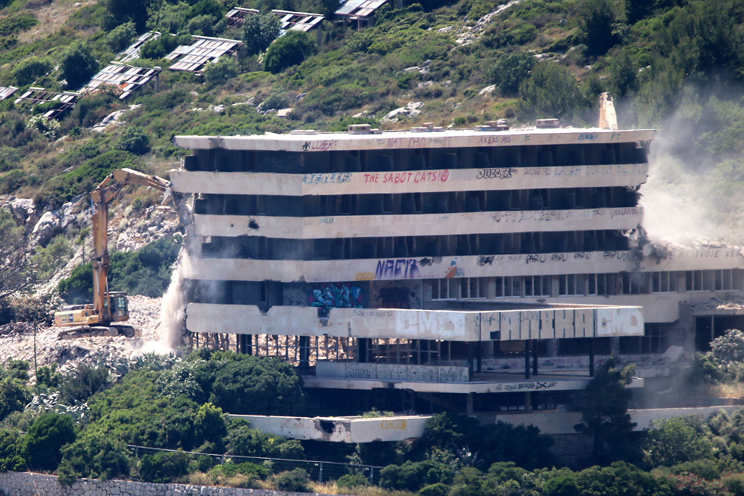 Dugoočekivani početak rušenja devastiranih hotelskih objekata u turističkoj zoni Kupari dogodio se 24. svibnja. Krenulo se s uklanjanjem zapadnog dijela hotelskog kompleksa, prvi na redu je bio ex Hotel Pelegrin. Strojevi vinkovačke tvrtke Eurco "progutali" su nekadašnji Pelegrin tijekom dvadesetak dana.