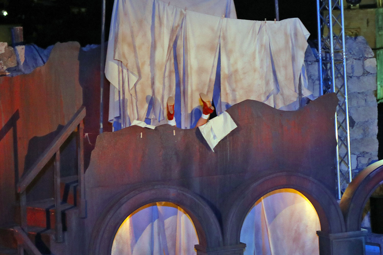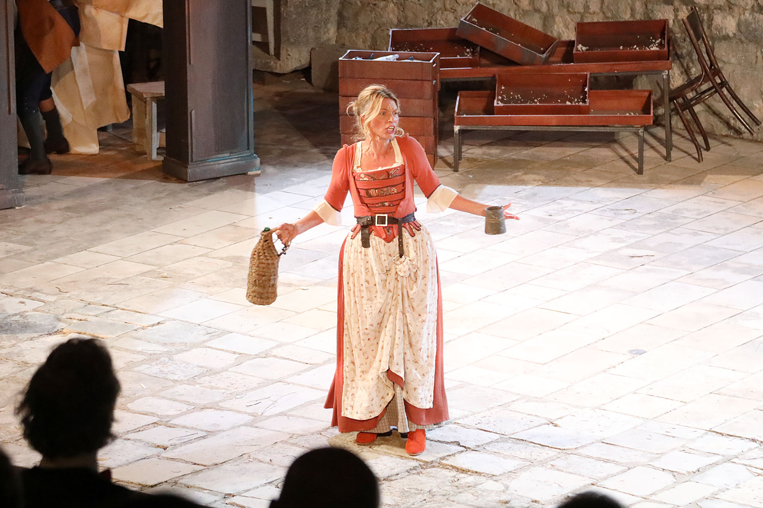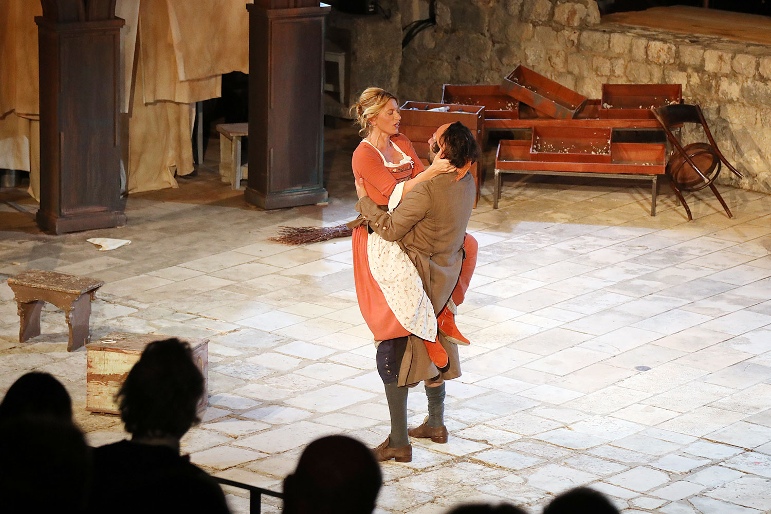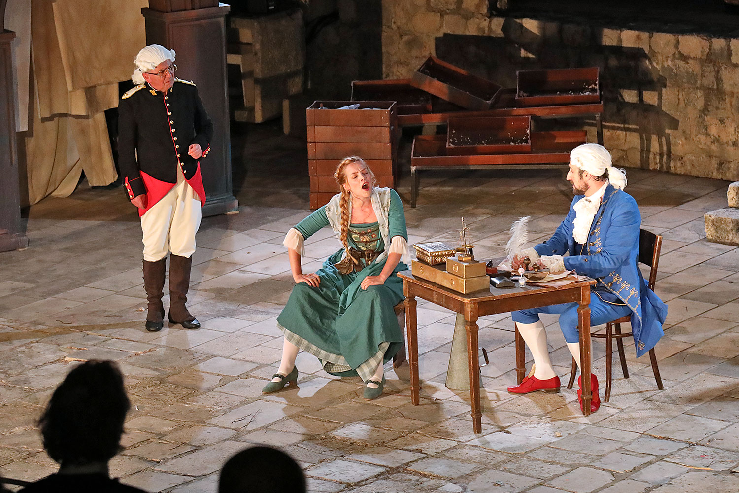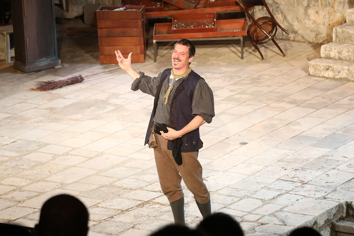 Glumačku podjelu čine: Joško Ševo (patrun Tonko, vlasnik ribarnice), Ksenija Prohaska (gospođa Pavle, žena patruna Tonka), Nika Lasić (Luce, djevojčica, sestra patruna Tonka), Bojan Beribaka (Đivo, mladi ribar), Nikola Radoš (Baldo, mladić, brat patruna Tonka), Borko Perić (patrun Nikša), Angela Bulum (gospođa Made, žena patruna Nikše), Nika Matušić (Ore, djevojčica, sestra gospođe Made), Nikolina Prkačin (Franica, druga djevojčica, sestra gospođe Made), Boris Matić (gospar Vice, ribar), Stipe Radoja (Duje, barkariol), Marijan Nejašmić Banić (Šiško, zamjenik kancelara Kaznenog suda), Branimir Vidić Flika (Zdur, glasnik kaznenog suda), Maro Drobnić (Vlaho/kanjac), Luka Bokić (Mol), Božo Petrić (Fra Božo). Svojom glazbom prvi premijerni naslov Igara su obogatili članovi Gradske glazbe Dubrovnik.