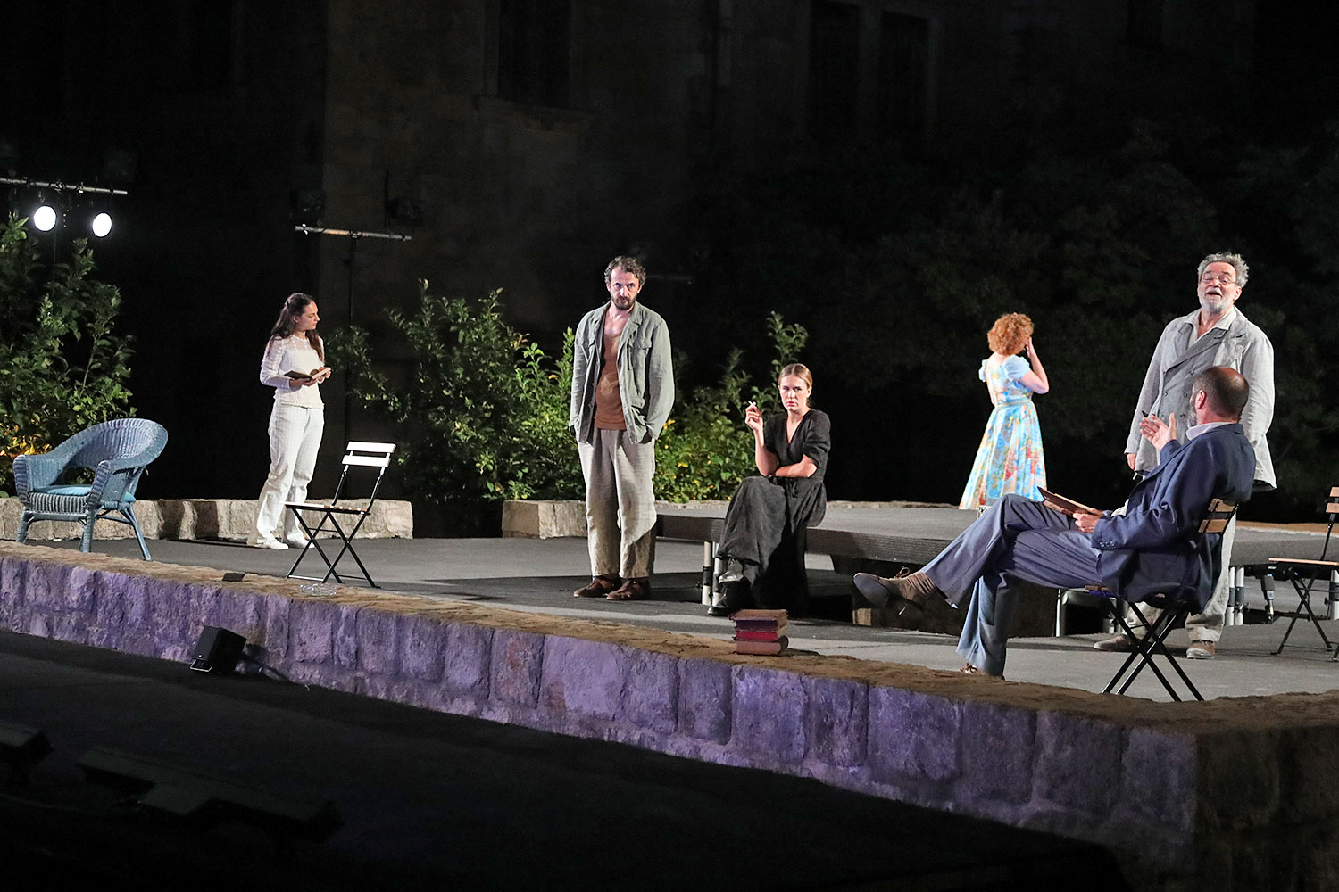 Njihove i svoje probleme razdijelio je likovima komada koji je pisao i kao da je s pomoću njih obavljao neki dijagnostički zahvat na sebi, ponirući duboko i dopirući do same srži stvari. Neki od likova jesu umjetnici, i to slavni i uspješni, neki uopće nisu, neki bi to htjeli biti pod svaku cijenu, neki žale što to nisu. Slavna glumica, uspješni pisac, mladi ambiciozni pisac, mlada buduća glumica, liječnik, umirovljeni pravnik, upravitelj imanja, njegova žena i kći, učitelj. Svi imaju svoje želje, strahove, ambicije, snove, sumnje, opsesije, zanesenosti, krize, razočaranja, iluzije. Mreža njihovih odnosa je gusta i isprepletena, a konstelacija u kojoj ih zatječemo na početku ostavit će posljedice na sve njih, između trećeg i četvrtog čina prolaze dvije godine i ništa više nije isto.