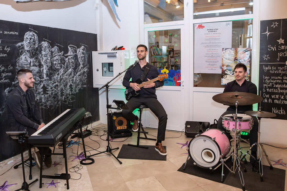 Poslijepodne je u prizemlju Narodne knjižnice Grad otvorena izložba „Unum in stellis“, koja okuplja suvremene dubrovačke autore inspirirane idejom kozmičkog zajedništva Tina Ujevića i jedinstvom univerzuma Nikole Tesle. Kroz različite likovne tehnike, radovi istražuju nevidljive veze između pojedinca, drugih i beskraja, uspostavljajući dijalog između poezije i znanosti. Postav potpisuju Robert Kralj i Marta Baće, a u izložbi sudjeluju Ivo Mladošić, Mišo Baričević, Katija Kovačić, Klara Knego, Josip Škerlj, Robert Kralj, Dubravka Tulio, Veronika Šulić i Ivana Miloglav. Izložbu je predstavila kustosica Maris Šišević, a može razgledati u prizemlju Narodne knjižnice Grad do 15. svibnja. Program je zaključen prigodnim druženjem uz glazbenu pratnju sastava Green Tea Co.