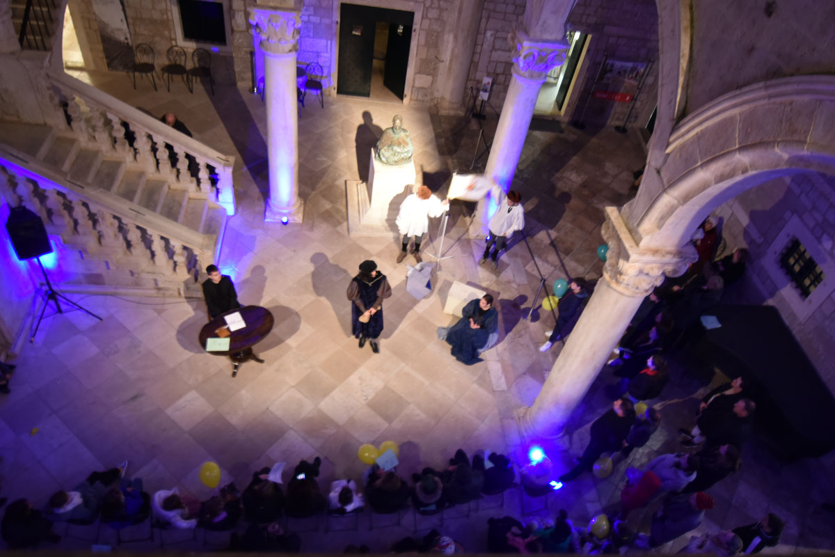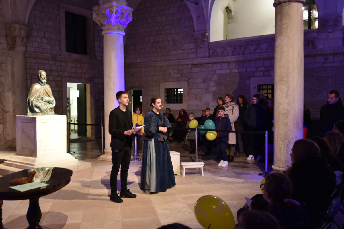 U Kulturno – povijesnom muzeju u Kneževu dvoru upriličen je igrokaz za djecu „Miho Pracat“ (prema tekstu Luka Paljetka „Tri skoka gušterice“) u izvedbi dramske družine Ekonomske i trgovačke škole Dubrovnik (Ivan Antun Berk, Luka Božić, Laura Boroje, Petar Kordić, Martina Perić, Matej Vučica, Marko Vuletić, Morana Žuro) pod vodstvom Katice Vidojević, Sandre Rossetti-Bazdan i Marije Matana-Bazdan. Uz stalni postav i izložbe „150 godina Dubrovačkih muzeja“ te „Ratne fotografije 1991./1992.“ Božidara Gjukića, posjetitelji su mogli preuzeti multimedijalni vodič „Knežev dvor u Dubrovniku“, na digitalnim totemima pogledati slikovnicu „Miho Pracat i gušterica“ autora Mara Krile i stare fotografije atrija Kneževa dvora te poslušati pjesme „Miho Pracat“, „Mihov san“ i „Gušterica“ objavljene u „Pjesni na dubrovačku“ koje je napisao i za Noć muzeja pročitao akademik Luko Paljetak.