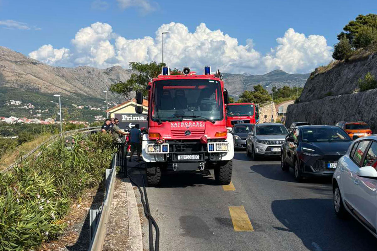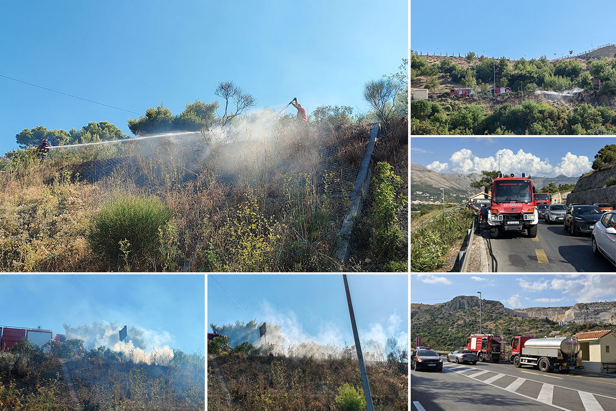 Intervencija župskih i dubrovačkih vatrogasaca; Gorjelo uz magistralu na raskrižju za Poslovnu zonu (FOTO)