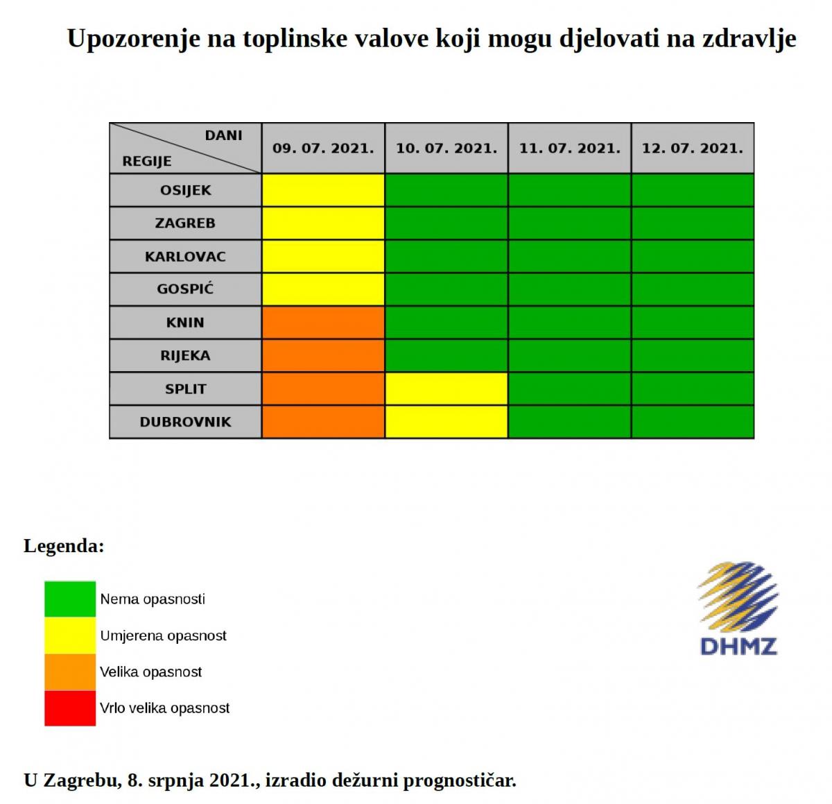 Za Dubrovačko-neretvansku županiju za petak 9. srpnja prognozirana je velika opasnost od toplinskog vala.