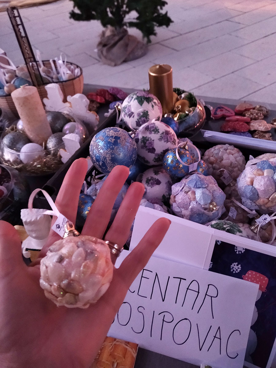 Uz današnju humanitarnu prodaju u Srebrenom, Centar Josipovac je božićne ukrase koje su izradili korisnici prodavao i prošle nedjelje ispred crkve sv. Mihajla u Lapadu.