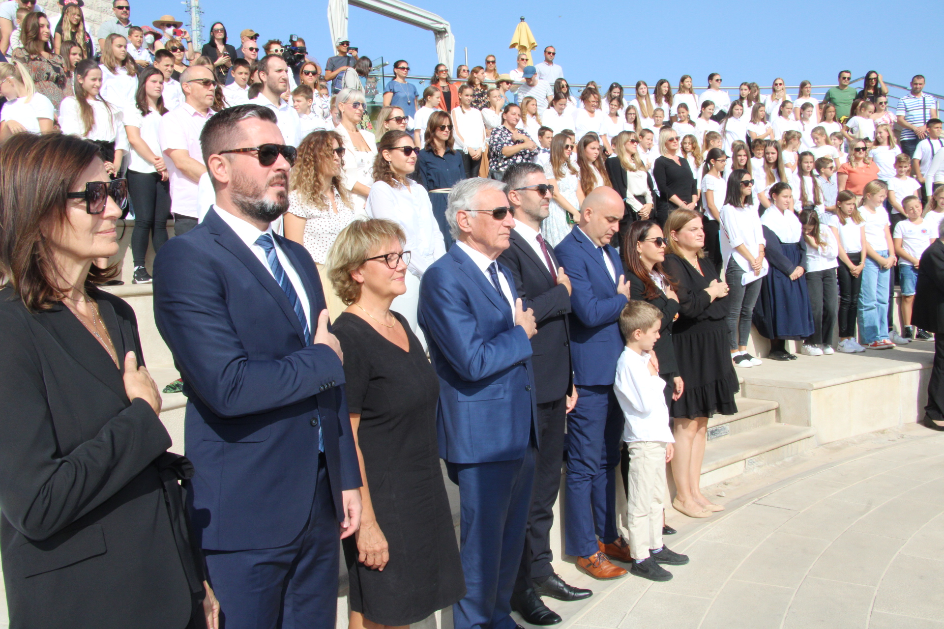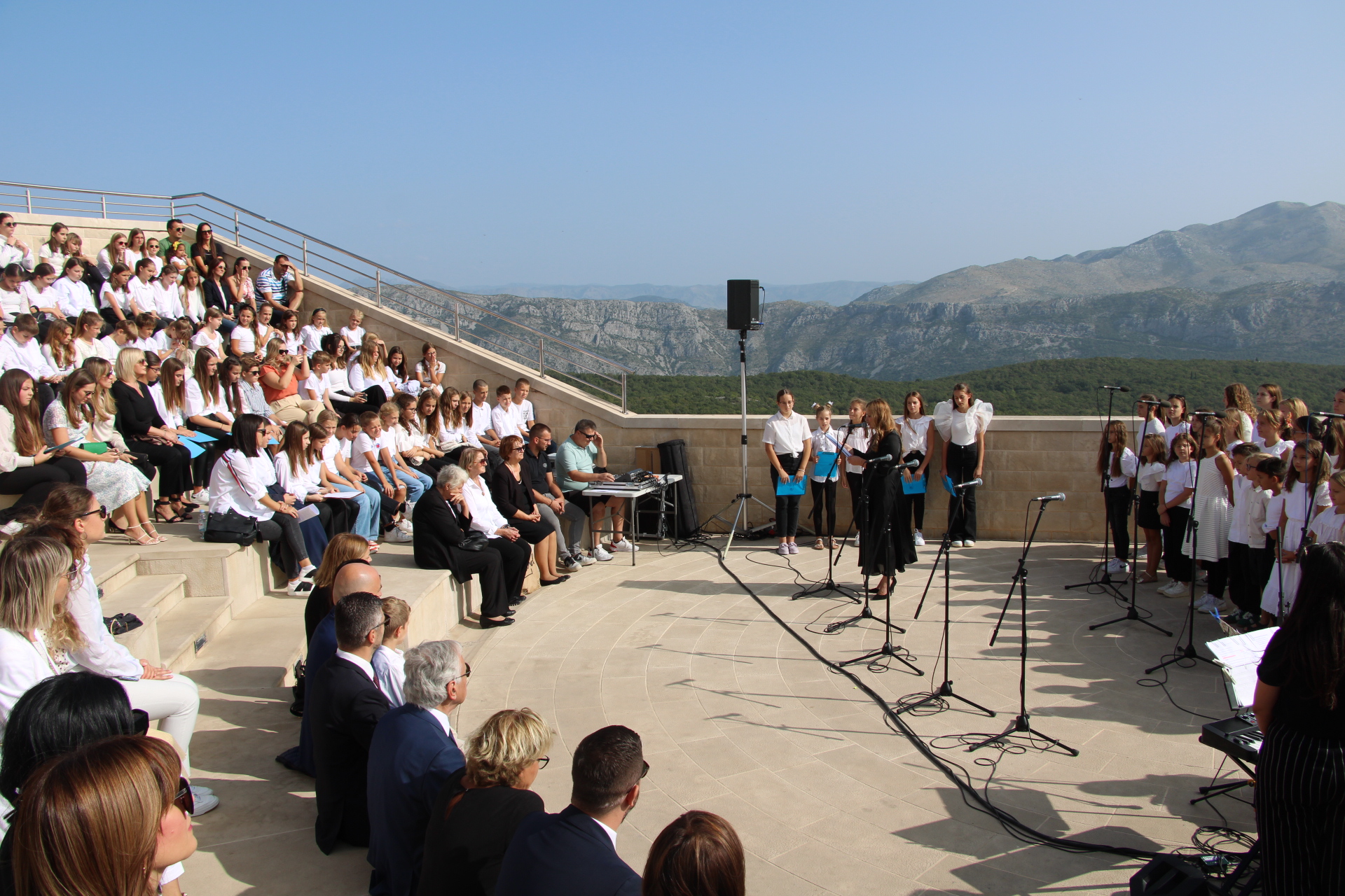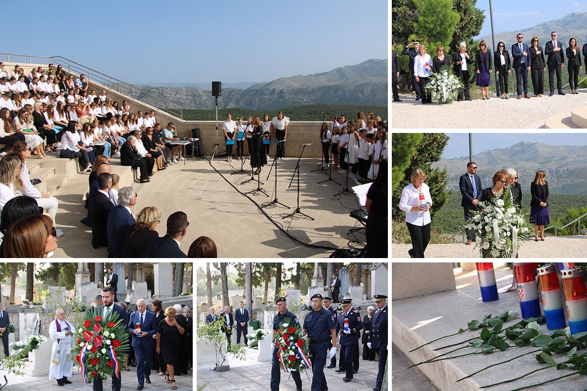 U amfiteatru na Srđu održan je tradicionalni prigodni školski program, nakon kojeg su uz molitvu položeni vijenci kod Spomen križa na Srđu.