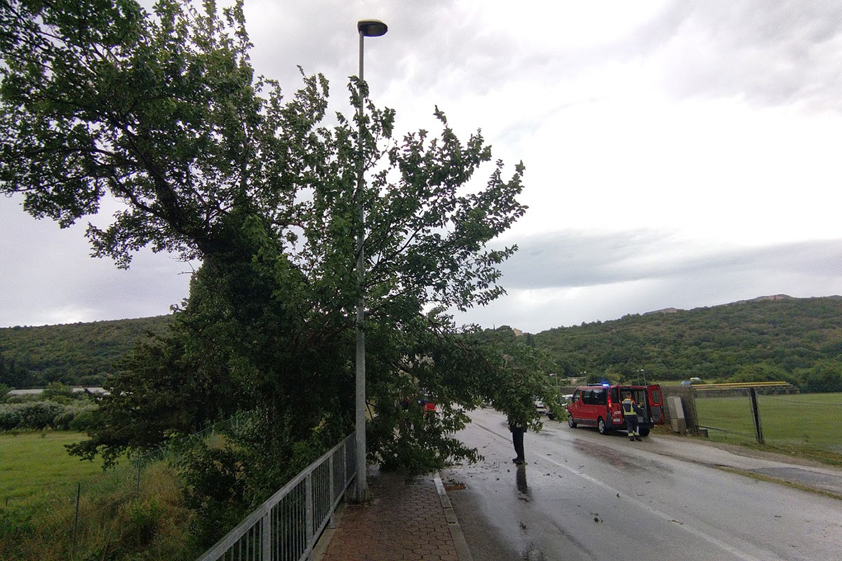 Olujni vjetar je oborio nekoliko stabala, vatrogasci župskog DVD-a su imali niz intervencija na cesrama i dvorištima obiteljskih kuća. Voda je prodrla i u hotelsko ugostiteljske objekte.