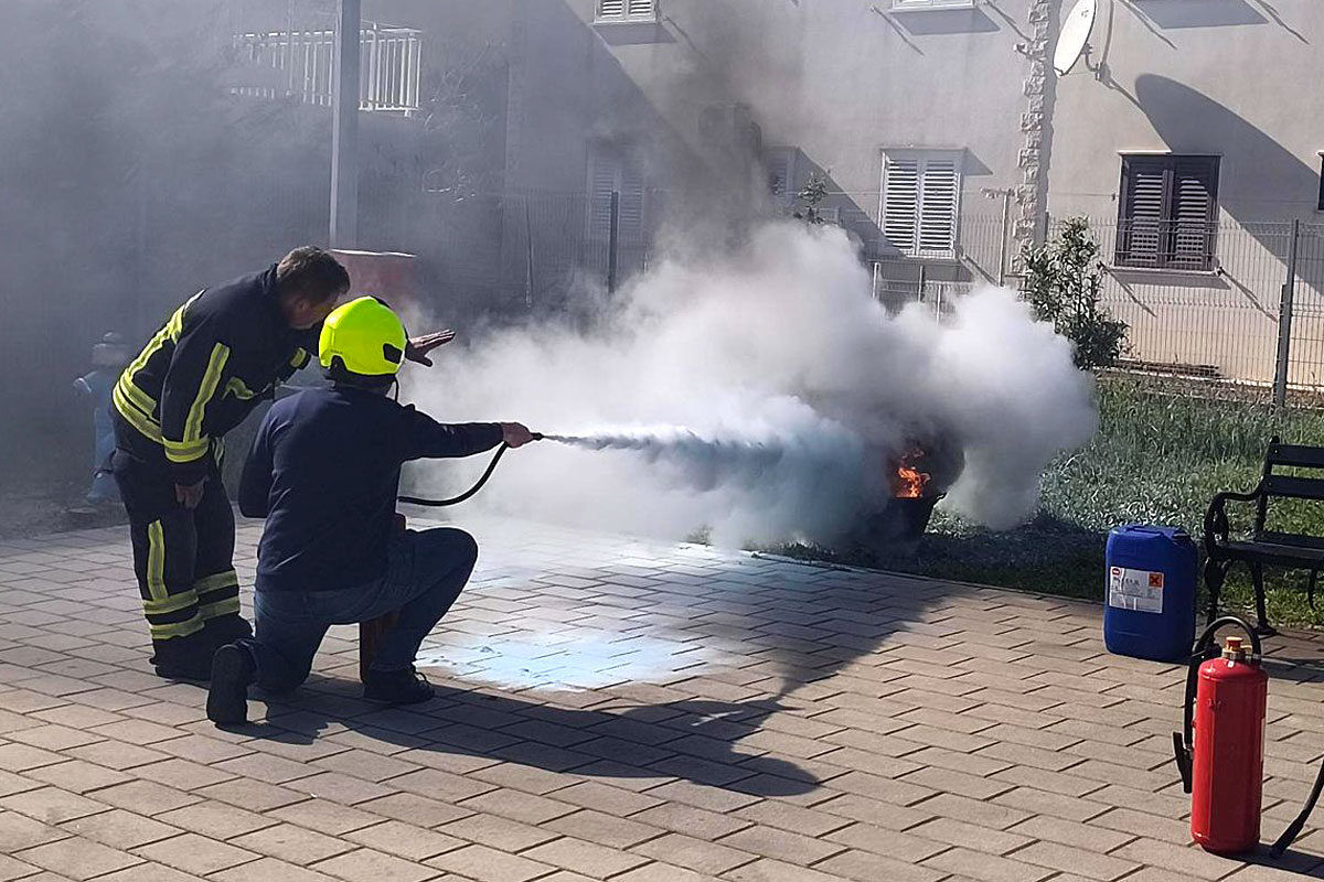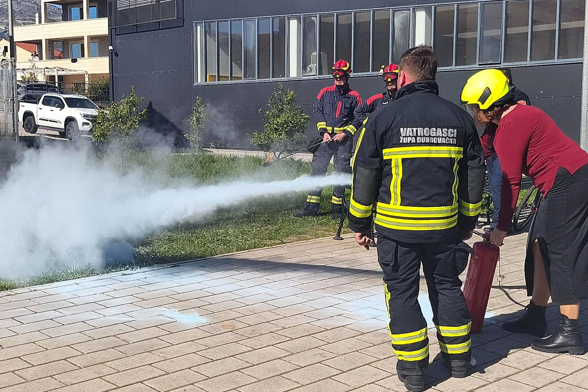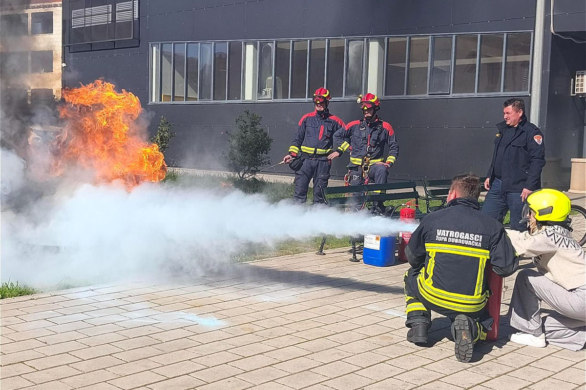 Nakon uvodnog predavanja zapovjednika, gospodina Štefija Bogdana, djelatnicima je omogućeno rukovanje protupožarnim aparatom, kako bi naučeno mogli primijeniti u slučaju potrebe.