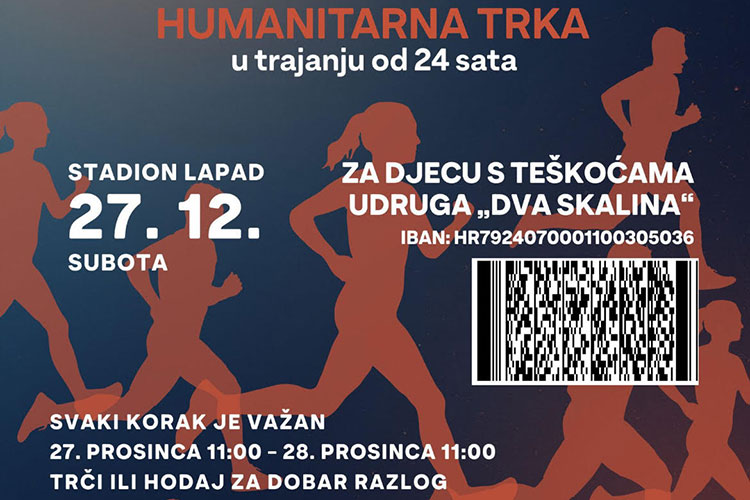 Udruga Hybrid Team Dubrovnik u suradnji s Atletskim klubom Dubrovnik te ostalim partnerima i sudionicima, 27. prosinca organizira otvorenu 24-satnu humanitarnu utrku, koja će se održati na novoj atletskoj stazi Gradskog stadiona Lapad u Dubrovniku.