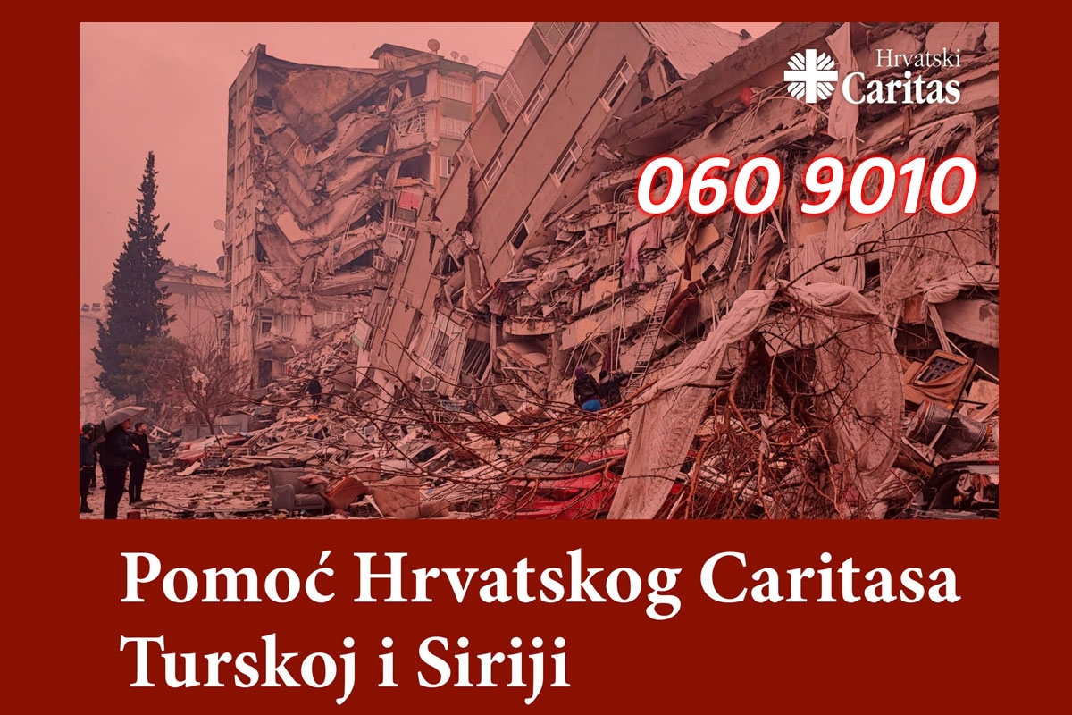 Hrvatski Caritas će zajedno s mrežom nad/biskupijskih Caritasa u Republici Hrvatskoj provoditi akciju prikupljanja financijskih sredstava koja će biti upućena stradalima u potresima u Turskoj i Siriji. U akciju se može uključiti pozivom na donacijskih telefon Hrvatskog Caritasa 060 90 10 (0,83 eura po pozivu, PDV uključen).