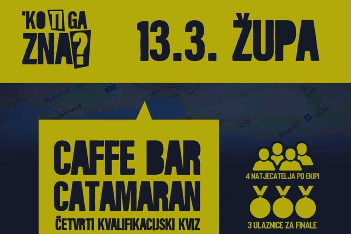 “‘Ko ti ga zna?” je prvo kvizaško natjecanje koje će pokušati pokrenuti kulturu kvizova na ovim prostorima - poručuju iz Udruga Mladih Ponat organizatora ovih kvizova koje će ugostiti kafići u Dubrovniku, Mokošici, Župi i Konavlima.