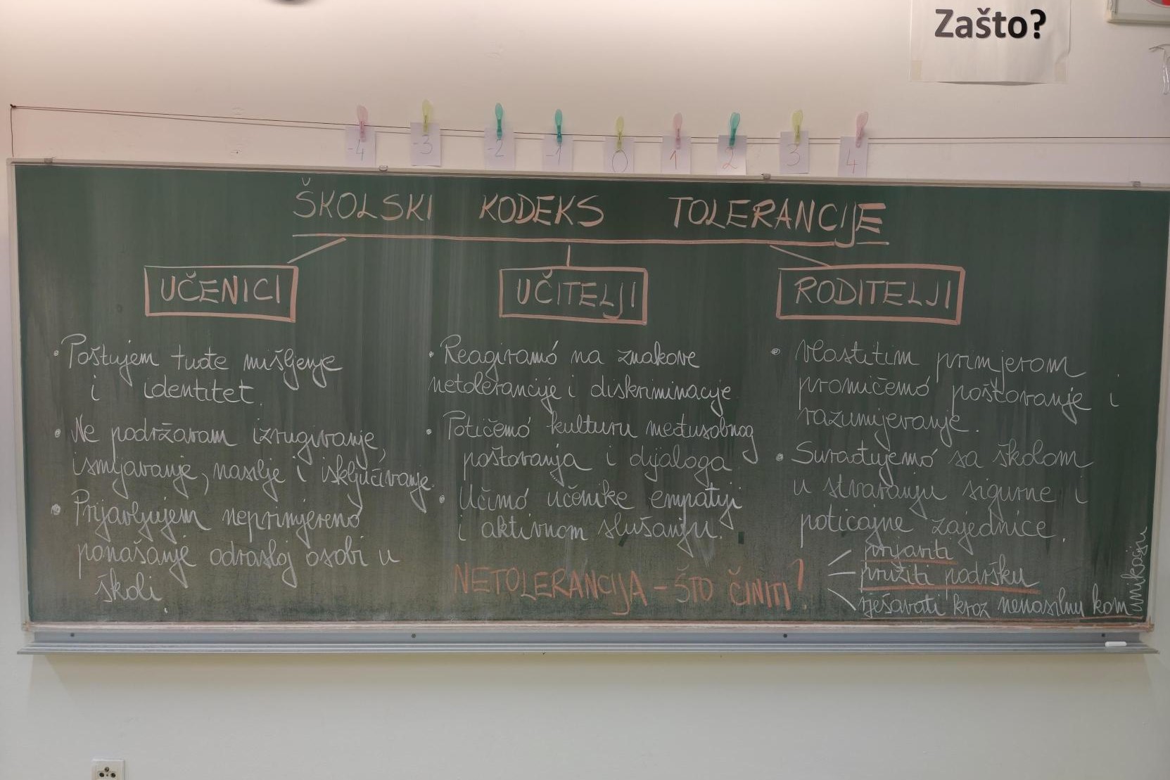 Poseban doprinos obilježavanju ovog važnog datuma predstavljala je provedba radionica o toleranciji, koje su članovi Vijeća učenika pripremili za svoje vršnjake. Tijekom radionica učenici su razgovarali o značenju jednakosti, različitosti i tolerancije, analizirali primjere iz svakodnevnog života škole, sudjelovali u kratkom kvizu, te se upoznali sa sadržajem Kodeksa tolerancije. Na kraju svake radionice voditelji su proveli refleksiju, koja je dovela do zajedničkog zaključka kako tolerancija počinje u nama – jednim osmijehom, lijepom riječi i razumijevanjem te kako jedino zajedničkim snagama možemo graditi školu poštovanja i prijateljstva.