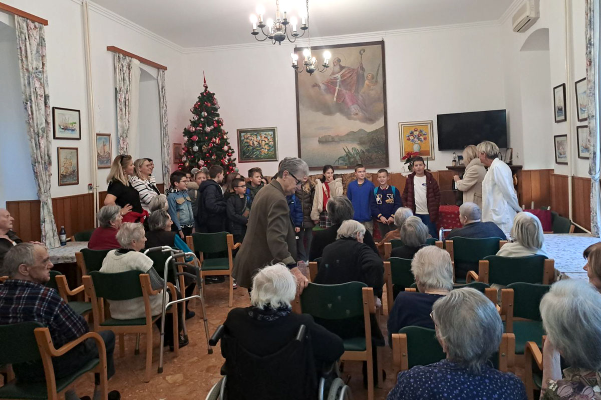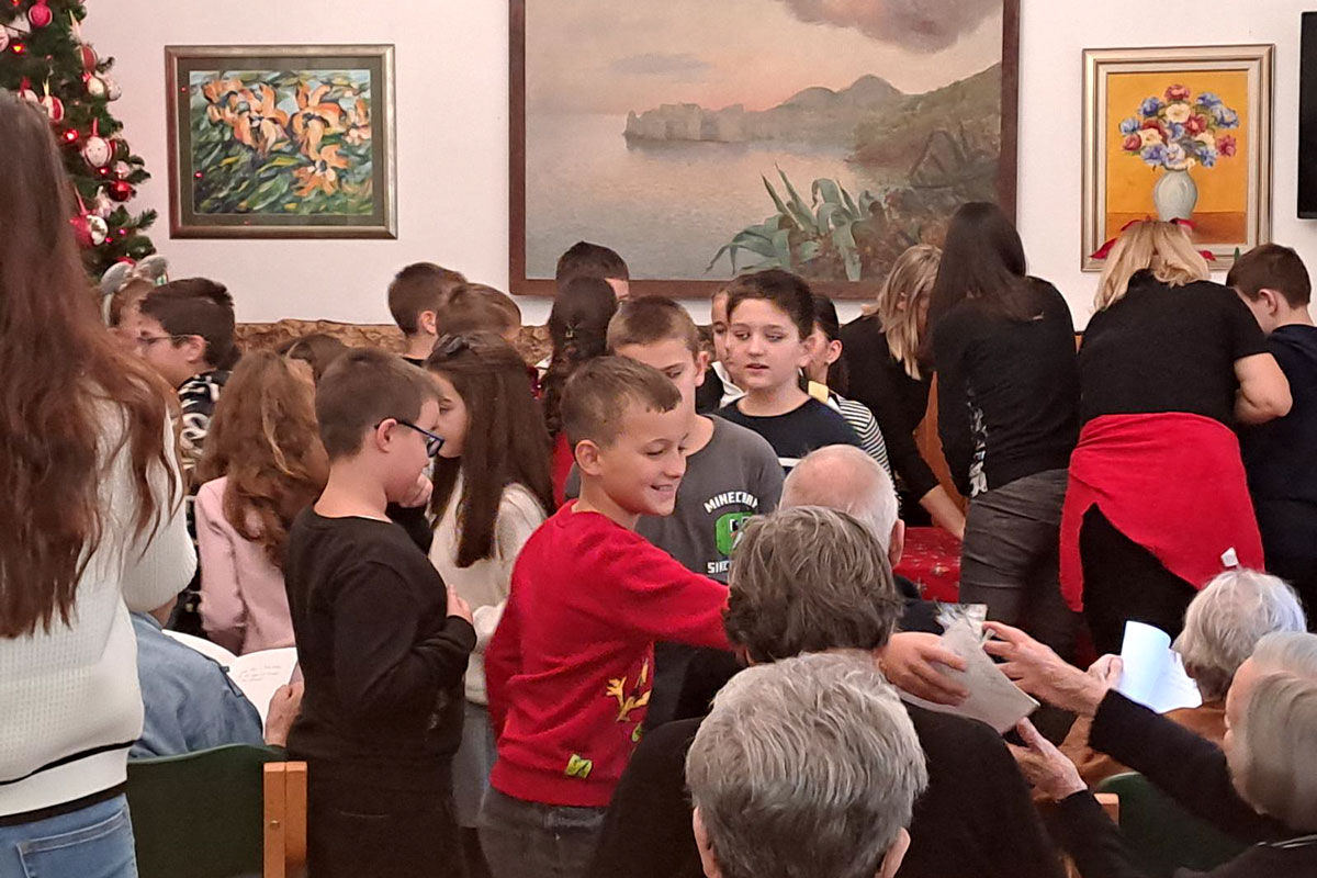 Učenici 4.d razreda, OŠ Župa dubrovačka, u sklopu projekta „Nonići“, a uz Međunarodni dan ljudskih prava, ostvarili su još jednu od planiranih aktivnosti. Ovaj put su razveselili korisnike i djelatnike Doma za starije Domus Christi, koji svoju tradiciju čuva još od 14. stoljeća. Nakon kolendavanja i igrokaza koje su prikazali starijim sugrađanima, podijelili su regale koje su vrijedno danima unaprijed spremali u školi i kod kuće sa svojim obiteljima. Na kraju su svi zajedno odigrali tombolu. Tu su naši nonići imali zadatak poučiti najmlađe igri koju su neki učenici prvi put zaigrali. Bilo je to veselo i nezaboravno iskustvo.