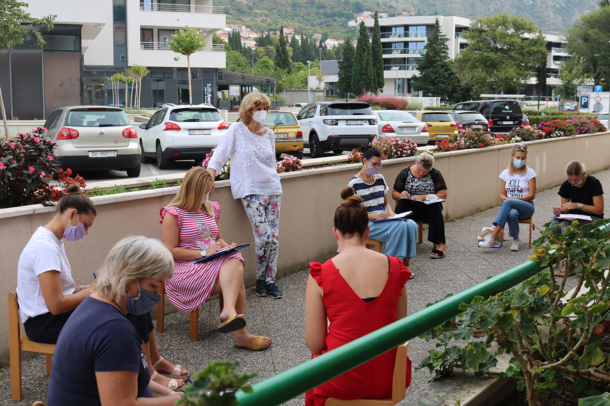 Voditeljice edukacije dr. sc. Nevenka Modrić i prof. Ljiljana Šarić su s polaznicama uvježbavale rješavanje problemnih i kriznih situacija uz korištenje figure čovjeka i bez nje.