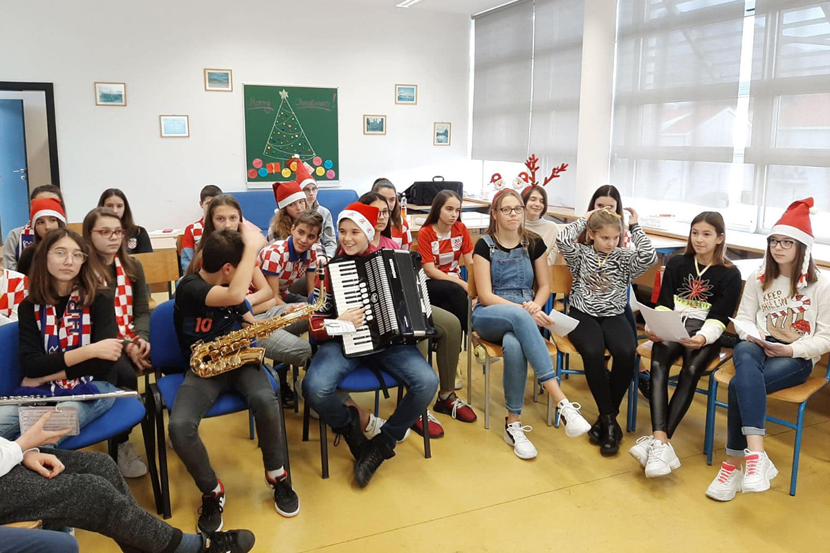 Tijekom jednosatnog sastanka učenici obje škole razgovarali su o Božićnim običajima svog kraja, postavljali pitanja na engleskom i talijanskom jeziku, pa čak i zapjevali i zasvirali Božićne pjesme. Tako su naši prijatelji iz Italije imali priliku čuti “Kolendu”, a mi smo čuli njihovu Božićnu pjesmu koja govori o radostima blagdanskog darivanja i ljubavi. Sastanak je završio razmjenom lijepih želja povodom nadolazećih blagdana i dogovorom o nastavku suradnje u idućoj godini.