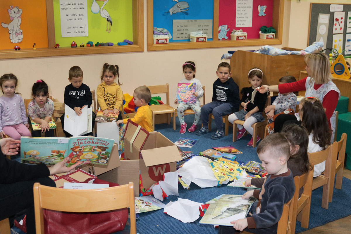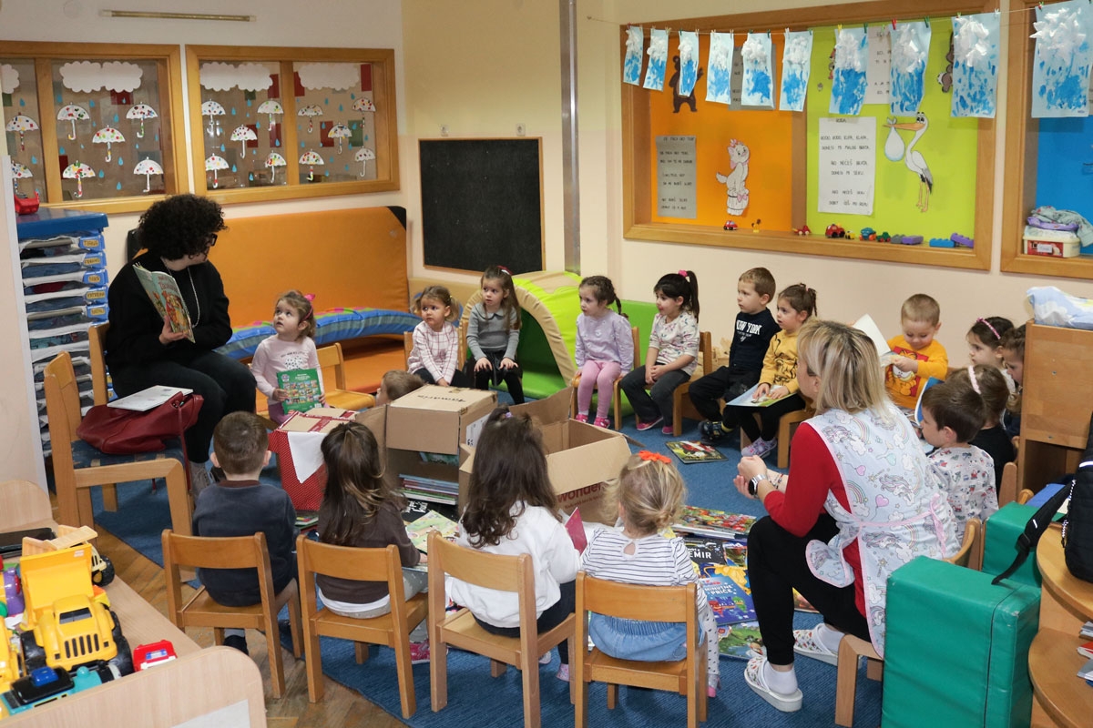 Župski vrtić posjetili su Marica Šapro - Ficović, dr. sc., knjižničarka savjetnica i voditeljica Županijske matične razvojne službe pri Narodnoj knjižnici Grad, Leona Ribić Radić, knjižničarka zadužena za Odjel za djecu i mlade, te Vedran Levi, knjižničarski suradnik. Tom prilikom donirali su tri velike kutije s raznovrsnim slikovnicama za djecu. S djecom u dobi od tri godine, otvorili su kutije i uživali u zajedničkom čitanju. Ova lijepa gesta donijela je radost malim čitateljima i pružila im nezaboravno iskustvo s knjigama.