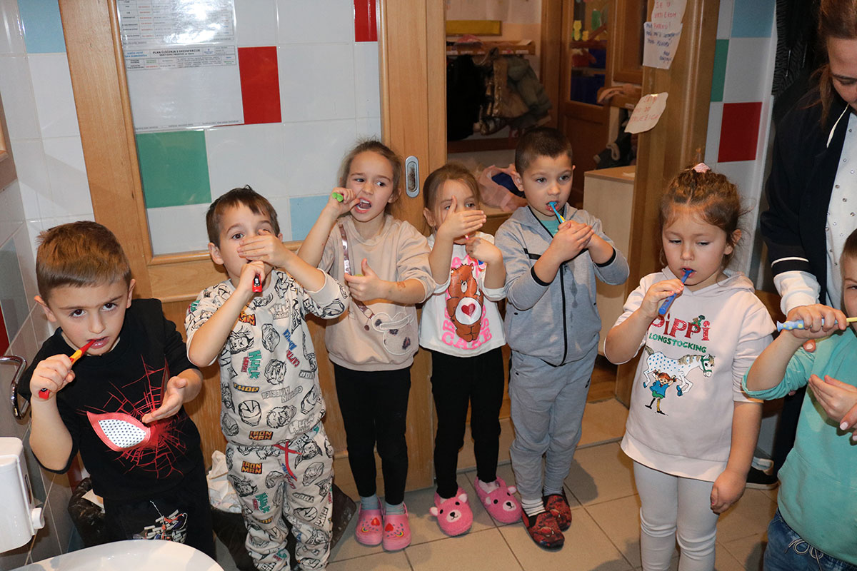 Osim tehnike pranja zuba, razgovarali su i o zdravim prehrambenim navikama te važnosti redovitih posjeta stomatologu. Kroz ovu radionicu, koja će se provoditi u vrtiću tijekom sljedeća dva tjedna, djeca će imati priliku usvojiti i učvrstiti zdrave navike oralne higijene kroz ponavljanje i praksu.