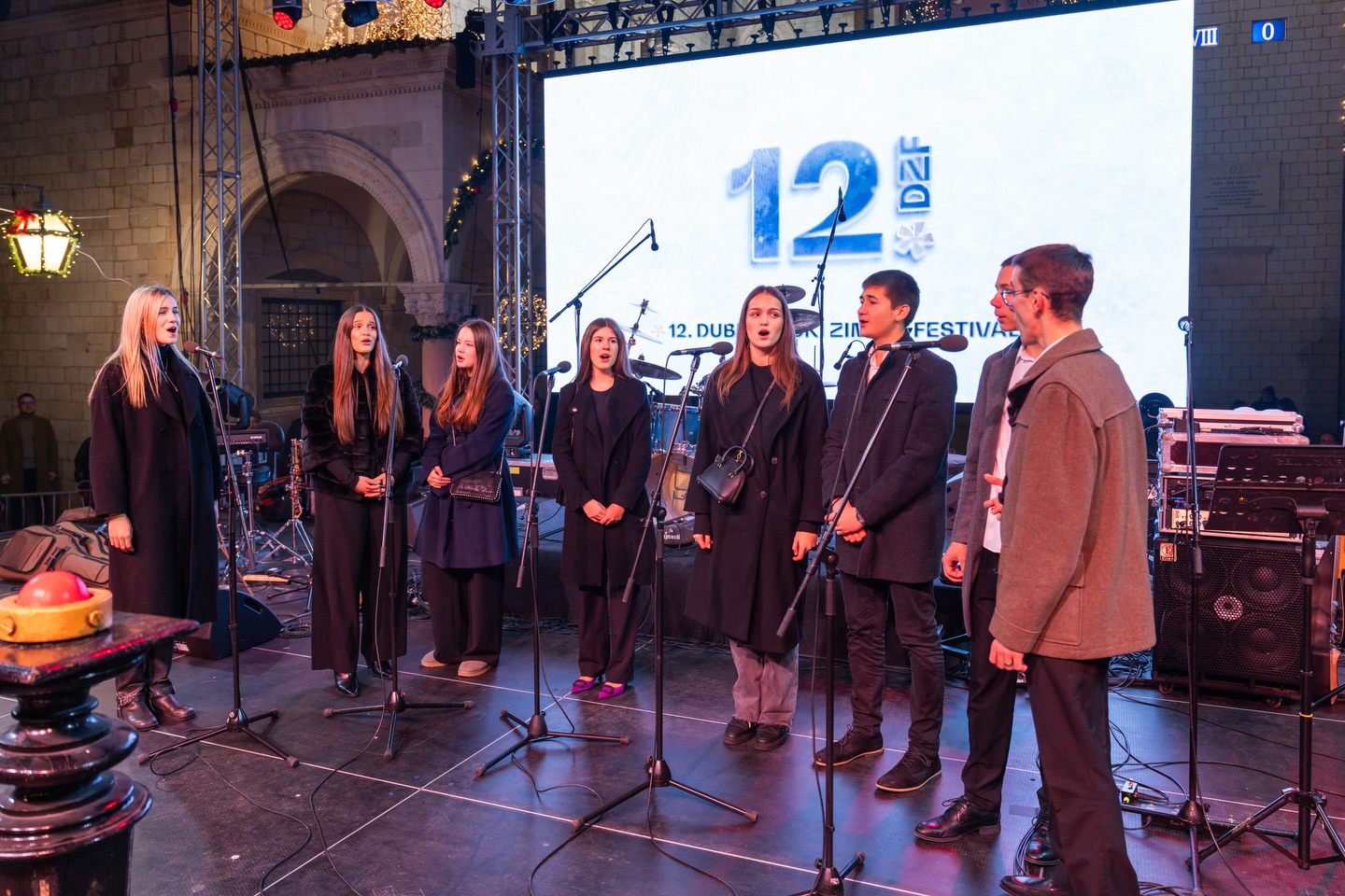 Ravnatelj Centra za pružanje usluga u zajednici Maslina Božidar Šustić upalio je prvu svijeću na adventskom vijencu ispred Kneževa dvora, a potom sa štićenicima i blagdansku rasvjetu na Stradunu, čime je službeno započeo 12. Dubrovački zimski festival!