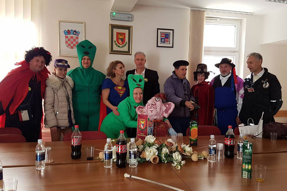 Pred polazak povorke Župskog karnevala općinski načelnik Silvio Nardelli i pročelnik Jedinstvenog upravnog odjela Jure Marić su jučer u zgradi Općine ugostili predstavnike gostujućih maškaranih skupina koje su sudjelovale u ovogodišnjoj povorci i predsjednicu Župskog karnevala Lucu Čučić.