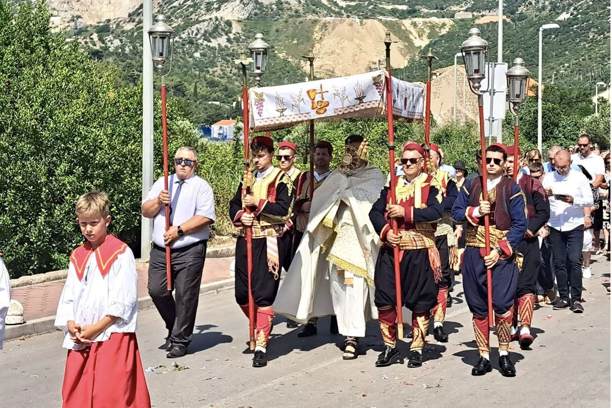 Tijelovske procesije s Presvetim oltarskim sakramentom tradicionalno se održavaju u svim našim župama. I ove godine donosimo fotogaleriju s procesije u Župi Svete Marije Magdalene Putem Dragovoljaca Domovinskog rata, te video povijanja barjaka ispred župne crkve.