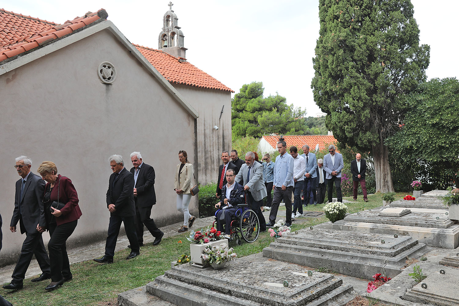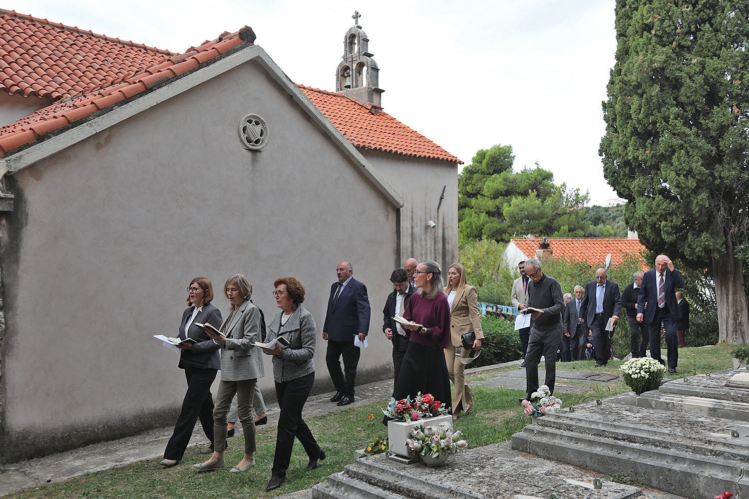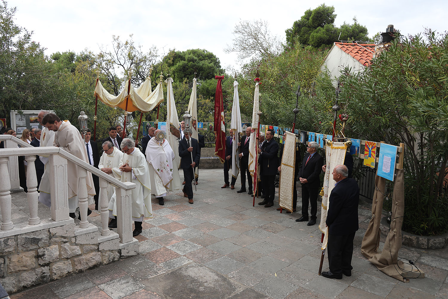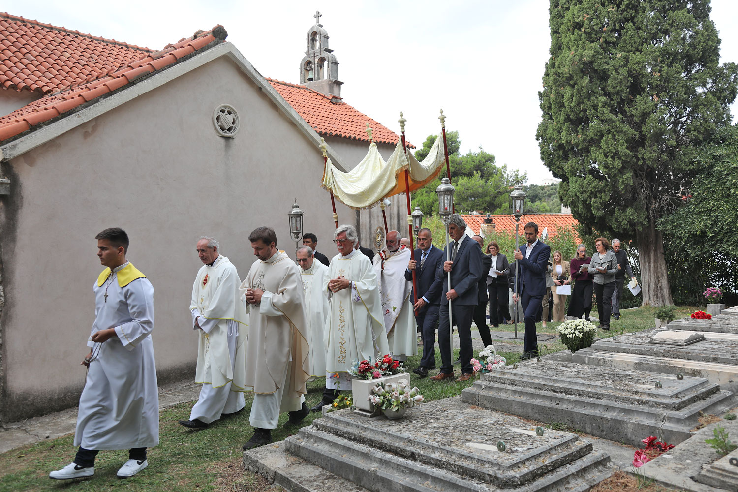 Nakon mise uslijedila je procesija oko crkve u kojoj su nošeni župni barjaci, a pod nebnicom je p. Mandurić nosio Presveti Oltarski Sakrament.