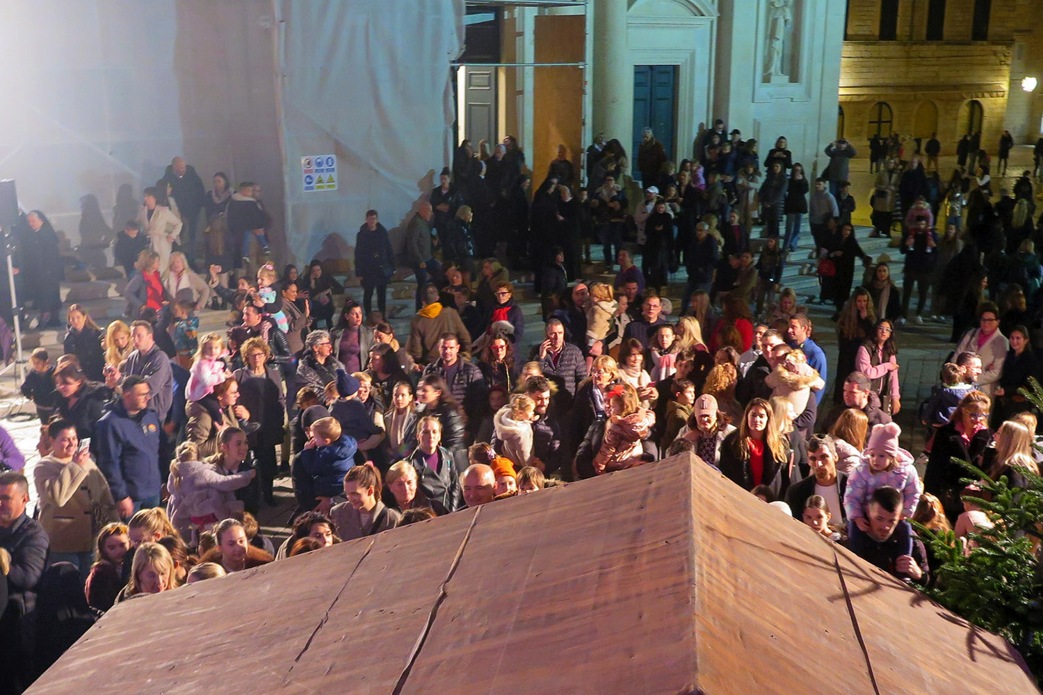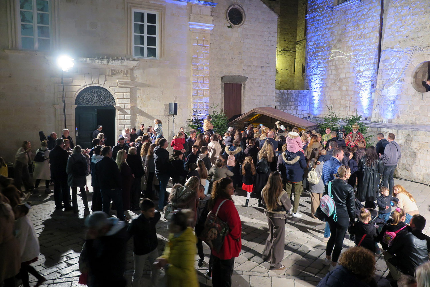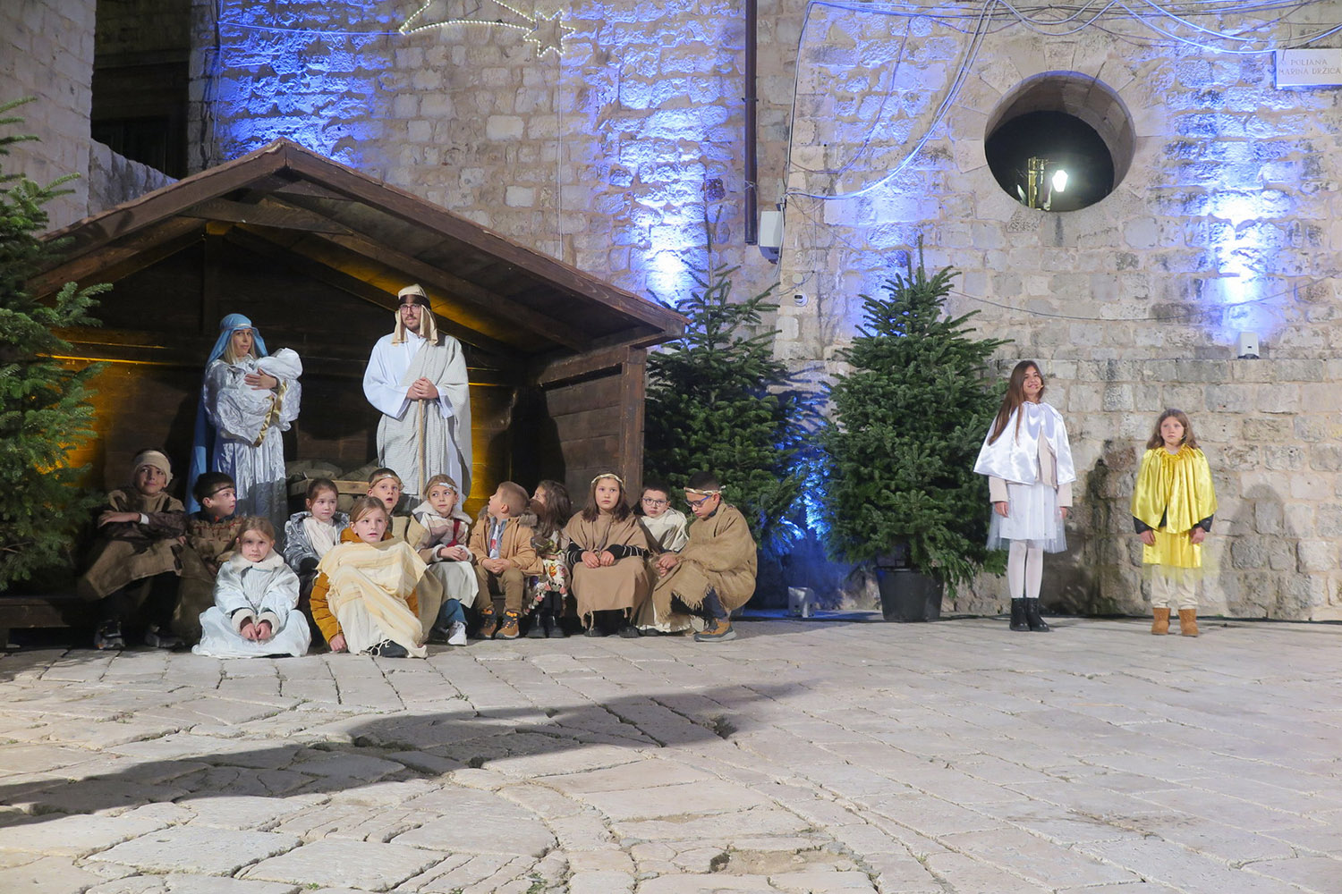 Uprizorenje Isusovog rođenja u obliku živih jaslica uz prigodne popratne tekstove i pjesme, održano je u nedjelju 21. prosinca ispred dubrovačke katedrale u organizaciji Vijeća za život i obitelj Dubrovačke biskupije i potporu Turističke zajednice Grada Dubrovnika. Svetu Obitelj predstavljala je obitelj Tee i Augustina Kaminski, od kojih je najmlađe peto dijete imalo ulogu malog Isusa.