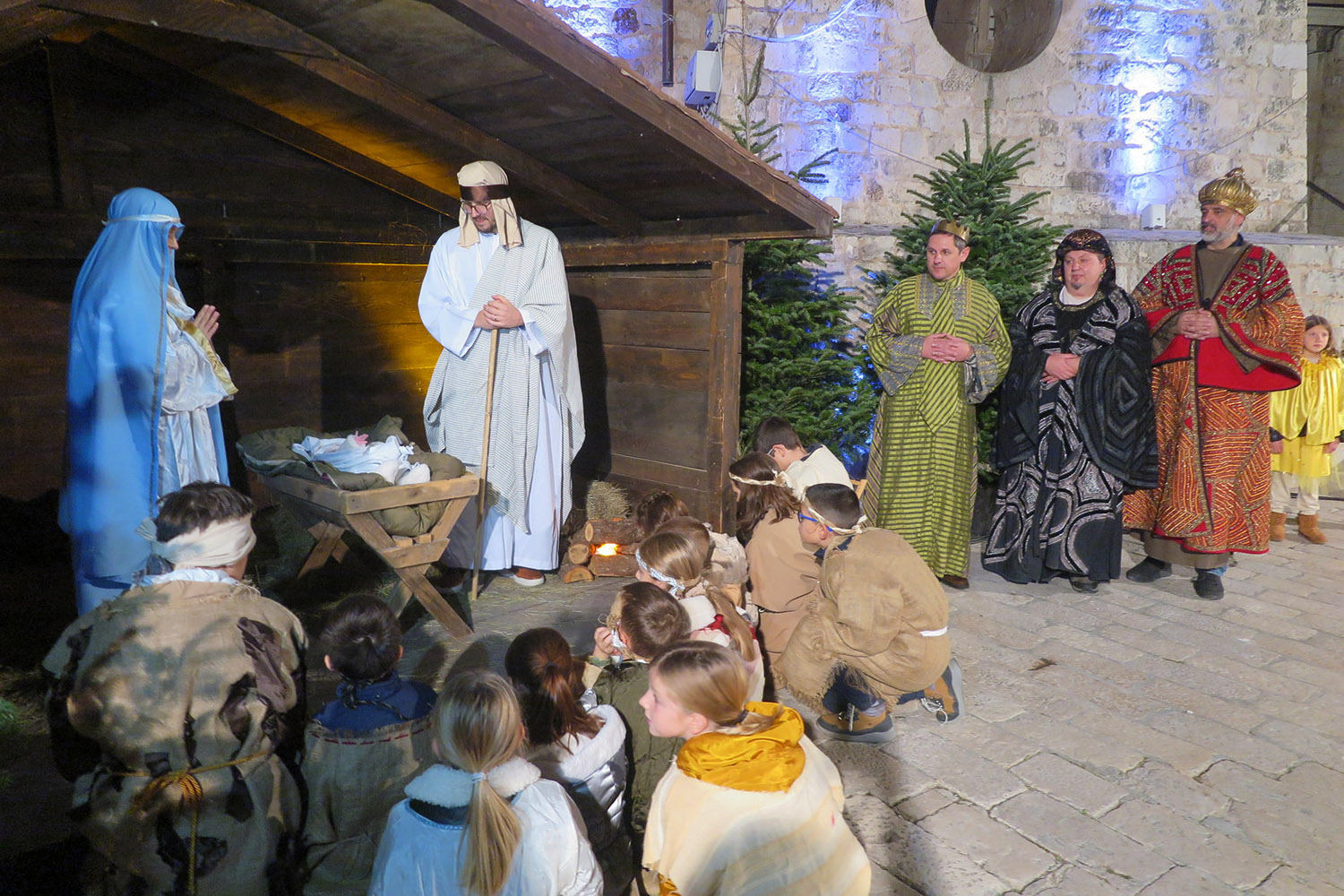 Nakon što je dijete položeno u jaslice, poklonili su mu se pastiri i kraljevi, a po završetku uprizorenja to su učinili svi okupljeni nagrnuvši do Svete Obitelji.