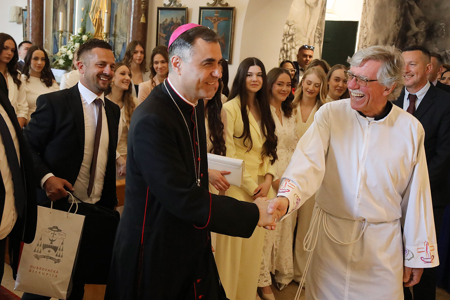 Na početku svečanosti predstavnik krizmanika je prigodnim riječima pozdravio biskupa, a na kraju krizmanicima, kumovima, roditeljima, njihovim obiteljima i prijateljima se obratio i župnik don Miljenko Babaić.