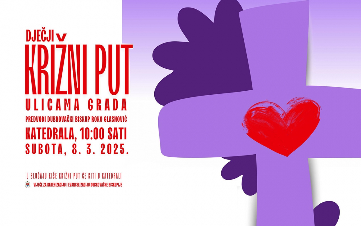 Pobožnost križnoga puta za djecu održat će se u subotu 8. ožujka 2025. u Dubrovniku s početkom u 10:00 sati u dubrovačkoj katedrali, a predvodit će je dubrovački biskup Roko Glasnović.