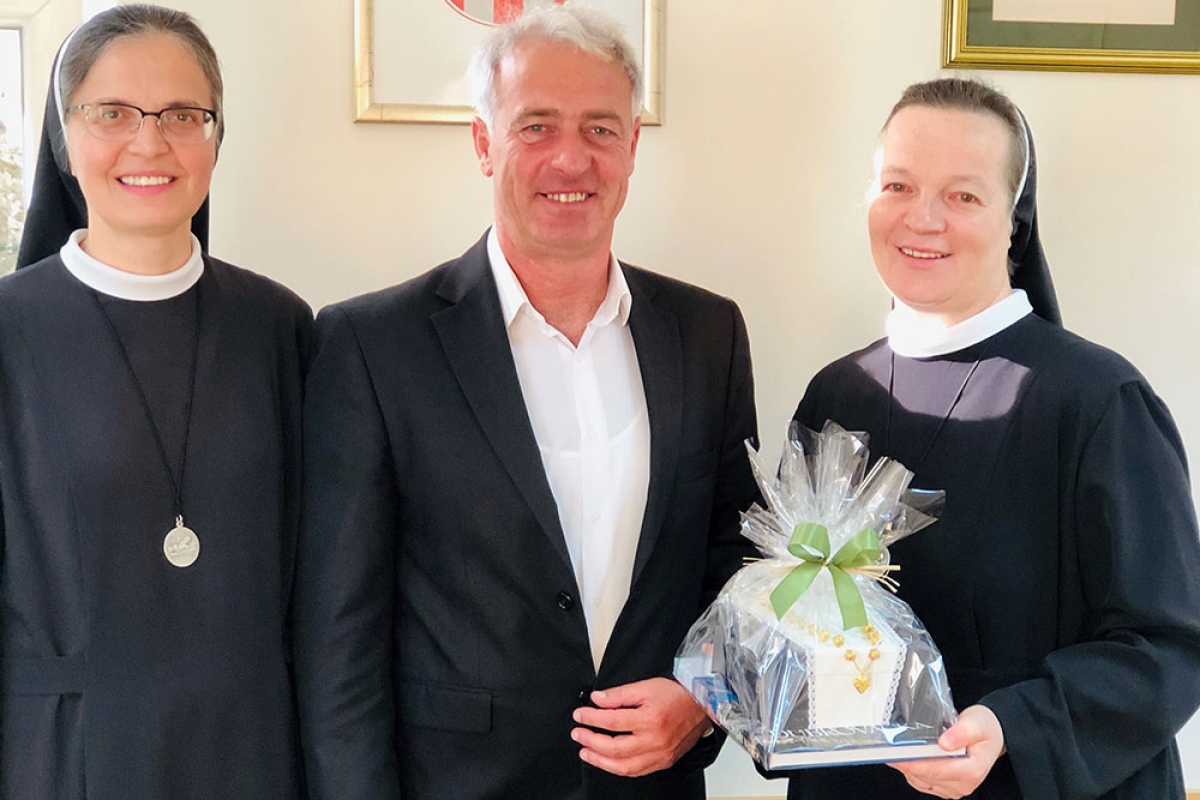 Općinski načelnik Silvio Nardelli danas je ugostio časnu sestru Brigitu Rojnicu koja je vršila službu predstojnice redovničke zajednice u Zavodu i službu medicinske sestre u Centru za rehabilitaciju Josipovac i časnu sestru Terezu Pervan Provincijalku Služavki Malog Isusa iz Splita .