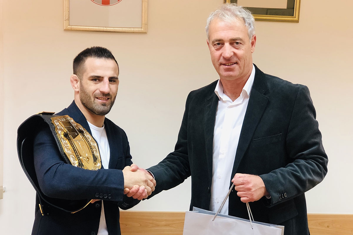 Antun Račić, prvak KSW-ove bantam kategorije na prijemu u Općini Župa dubrovačka