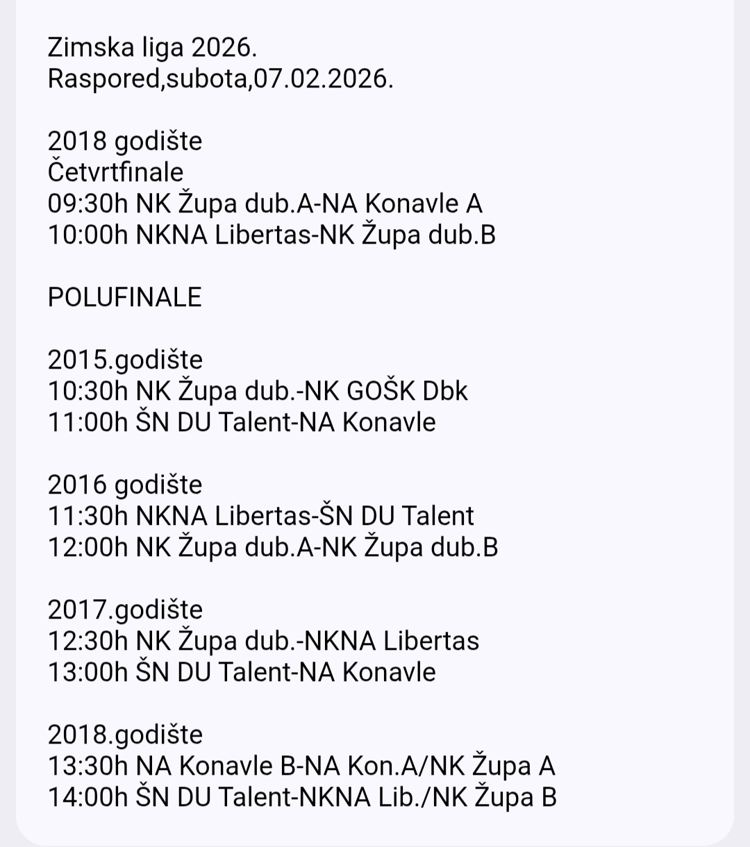 Uz današnju fotogaleriju donosimo rezultate odigranih utakmica te raspored poluzavršnice koja se igra u subotu 7. veljače.