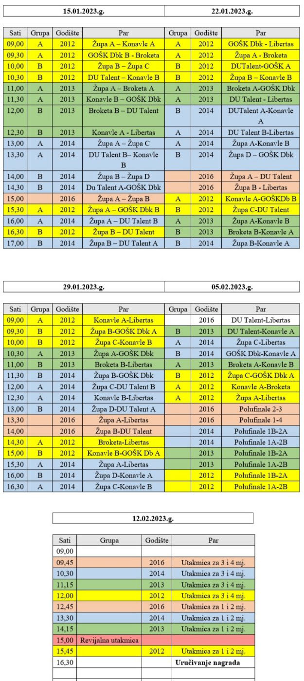 Igra se u četiri uzrasne kategorije 2012., 2013., 2014. godište te najmlađi 2016. godište. Utakmice se igraju po 20 minuta bez pauze, a polufinala i finala dva puta po 15 minuta. Završnica je planirana za 12. veljače.