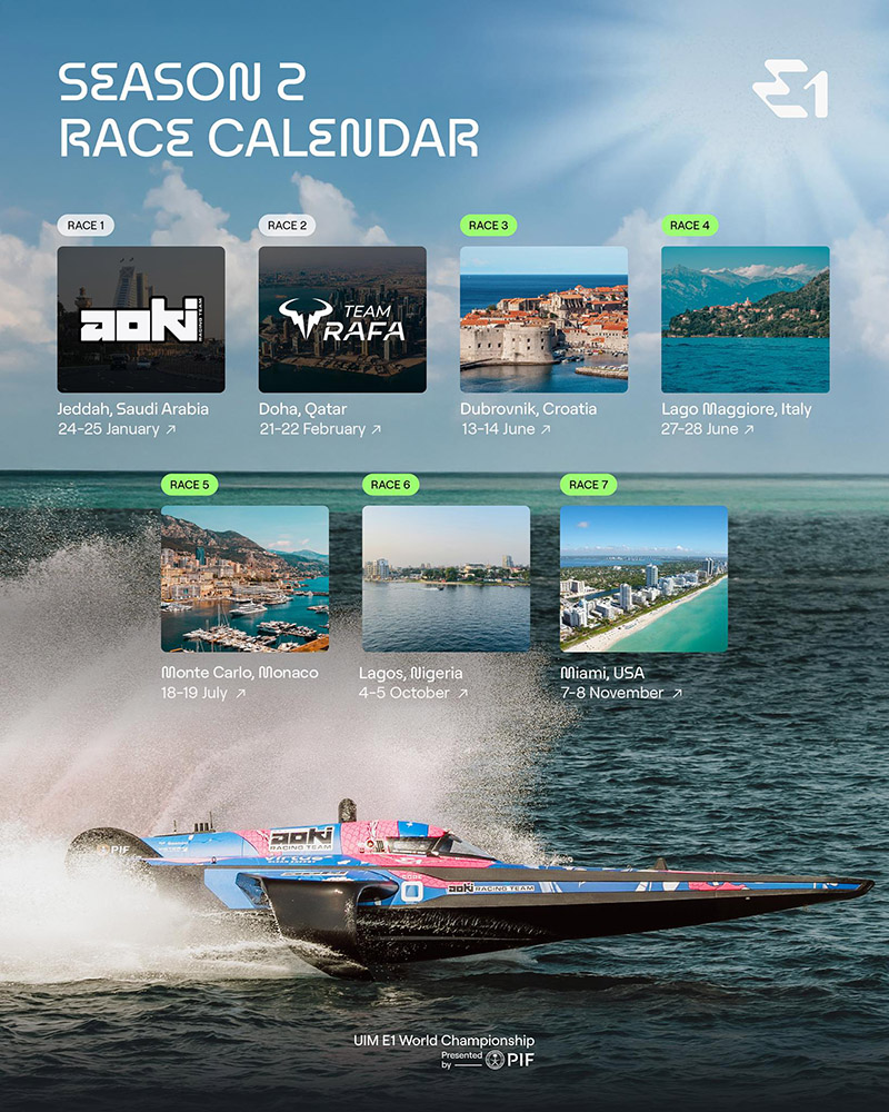 U Dubrovniku će početi s nestrpljenjem očekivani europski dio natjecanja E1. Nakon ovog vikenda prvenstvo će biti postavljeno na prekrasnim vodama Lake Maggiorea, prije nego što se vrati u znameniti dom utrkivanja - Monaco. Ova će serija natjecanja zatim prvi put biti održana na afričkom kontinentu, gdje će živahne obale Lagosa biti domaćin pretposljednje utrke u sezoni 2025. godine.