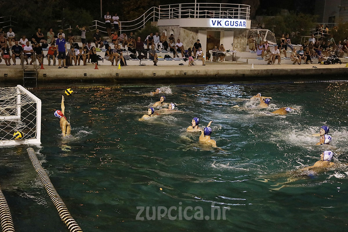 Kao uvod u zabavu Feste Svetog Roka sinoć je na plivalištu odigrana utakmica između Gusara i kombinirane seniorsko-juniorske momčadi Jug Adriatic osiguranja. Bila je to, ako izuzmemo utakmice Divlje lige, vjerojatno jedina seniorska utakmica koja se u Mlinima mogla gledati ovog ljeta, utakmica nekada ljetnog sporta koji je okupljao brojnu publiku koja je pratila uzbudljive i napete drugoligaške utakmice na plivalištima duž Jadranske obale. Ova utakmica je bila i zamjena za onu tradicionalnu na Sv.Roka između Gusara i Cavtata jer Cavtat zbog ovakvog stanja u hrvatskom vaterpolu nema seniorsku momčad.