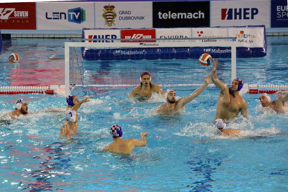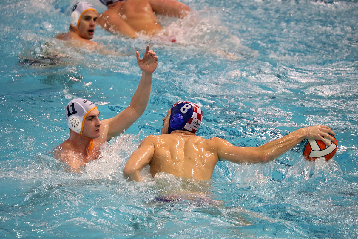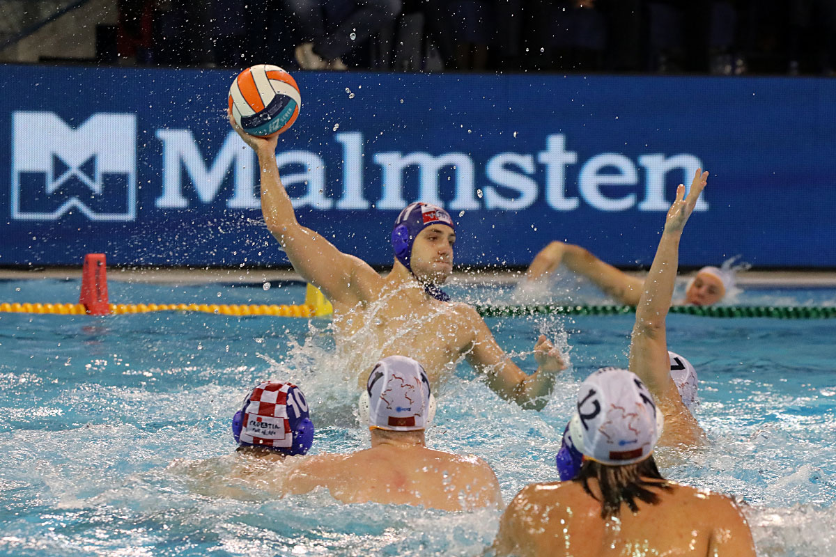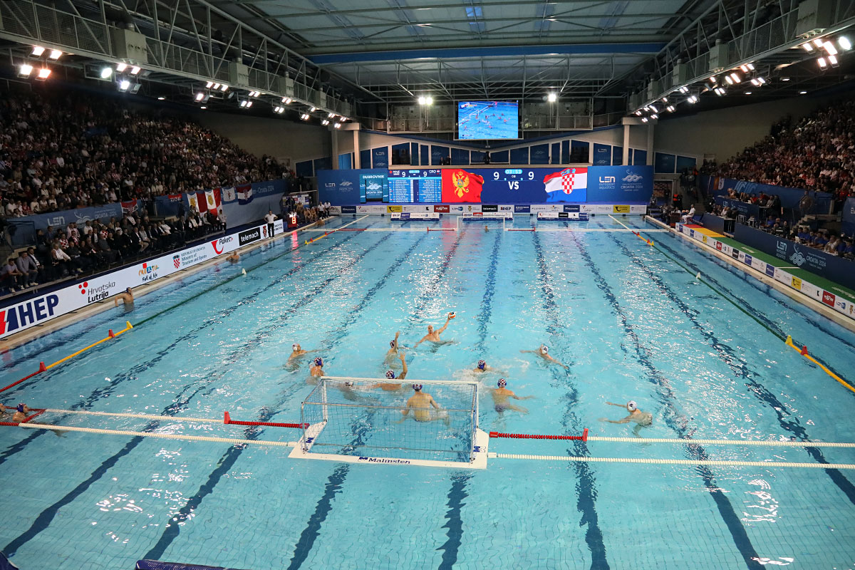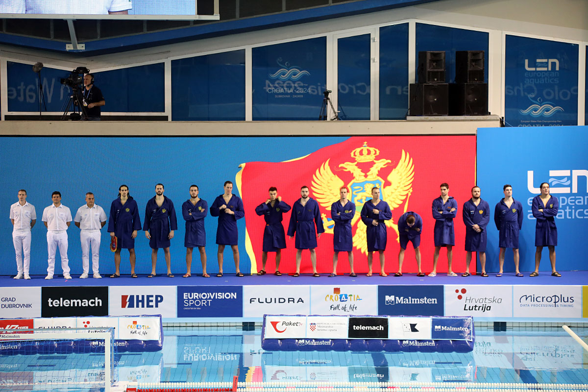 Nakon odličnog otvaranja i vodstva 2:0 u užarenom grotlu tribina gruškog bazena, Hrvatska opet kao i protiv Španjolaca pada u drugoj četvrtini kada Crnogorci preokreću na 6:5 i ima vodstvo od 9:7, ali tri uzastopna gola Crnogorcima pred sam kraj donose prednost od 9:10. Dvije minute prije kraja, kod 10:10 Crna Gora je zbog brutalnosti suđene Vladi Popadiću ostala do kraja susreta s igračem manje, ali Fatović iz peterca gađa gredu. Nije nas išlo ni ju zadnjem napadu, kada kod rezultata 11:11 ne koristimo dva igrača više i utakmica odlazi u u raspucavanje peteraca.